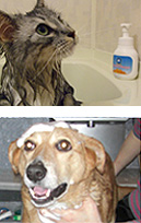 - オレンジX50~100倍希釈液を全体にスプレーで馴染ませるか、ペット用バスに希釈液のお湯を張り入浴させた後、シャワーでかるく流してください